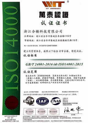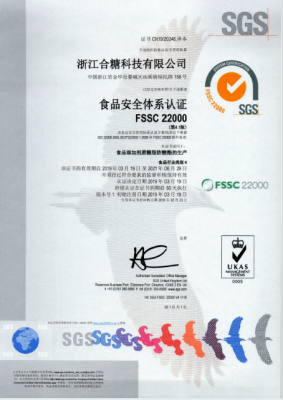 公司被評為“國家高新技術(shù)企業(yè)”,并有多個產(chǎn)品獲得“國內(nèi)發(fā)明專利”,通過了FSSC22000食品安全體系認(rèn)證,ISO14001環(huán)境管理體系,MUI HALAL認(rèn)證,SKS KOSHER認(rèn)證,ISO9001質(zhì)量管理體系和ISO22000食品安全管理體系認(rèn)證,并有多個產(chǎn)品通過了“歐洲REACH法規(guī)”注冊和“韓國REACH法規(guī)” 預(yù)注冊。